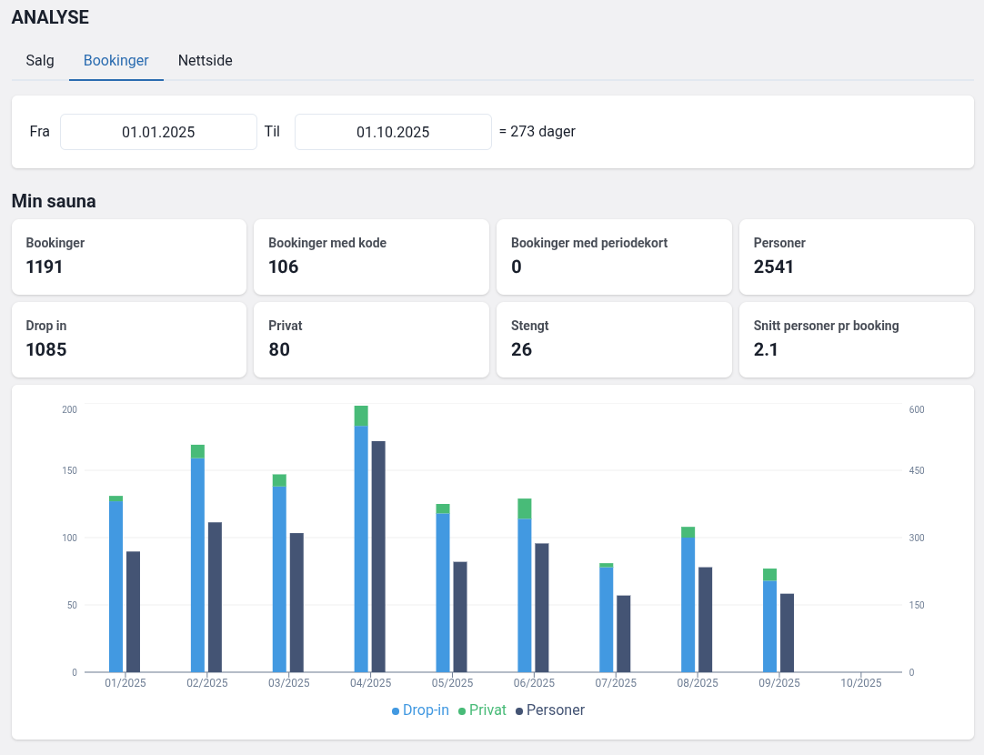 Oversiktlig kontrollpanel som gir deg full kontroll over alle aspekter av din badstue-virksomhet.