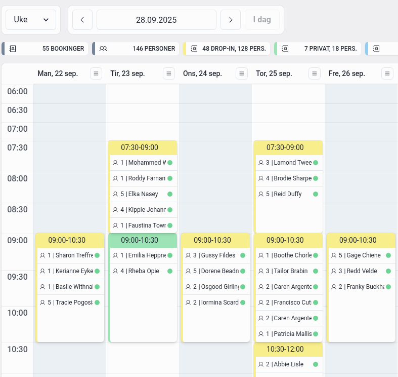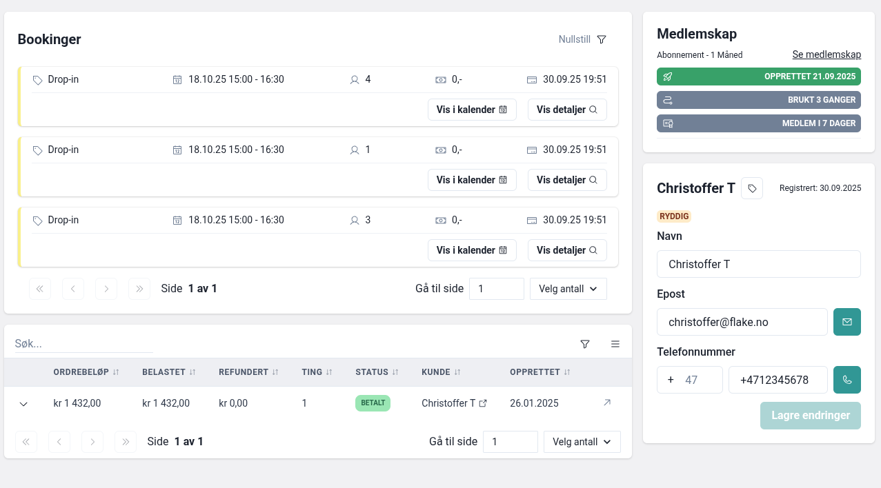 Enkel og oversiktlig administrasjon som håndterer alt fra drop-in, private og event bookinger.