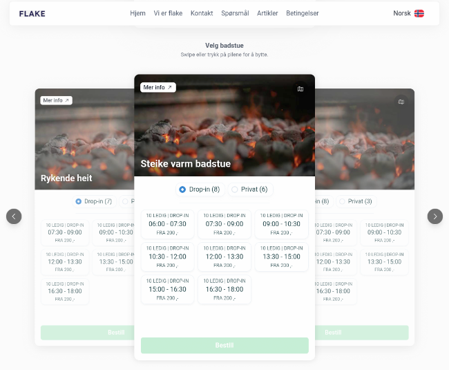 Flake er en komplett alt-i-ett løsning som gir deg alt du trenger for å drive en moderne badstue. Fra booking og betaling til ovnstyring og kundebehandling - vi har deg dekket.